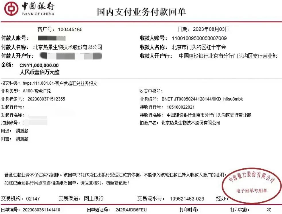 熱景生物一直密切關(guān)注著汛情救援進(jìn)展,主動(dòng)聯(lián)系相關(guān)部門提供支援幫助,并向北京市門頭溝區(qū)紅十字會(huì)捐贈(zèng)100萬(wàn)元防汛抗洪資金,助力當(dāng)?shù)卣蜕鐣?huì)力量抗擊災(zāi)情。