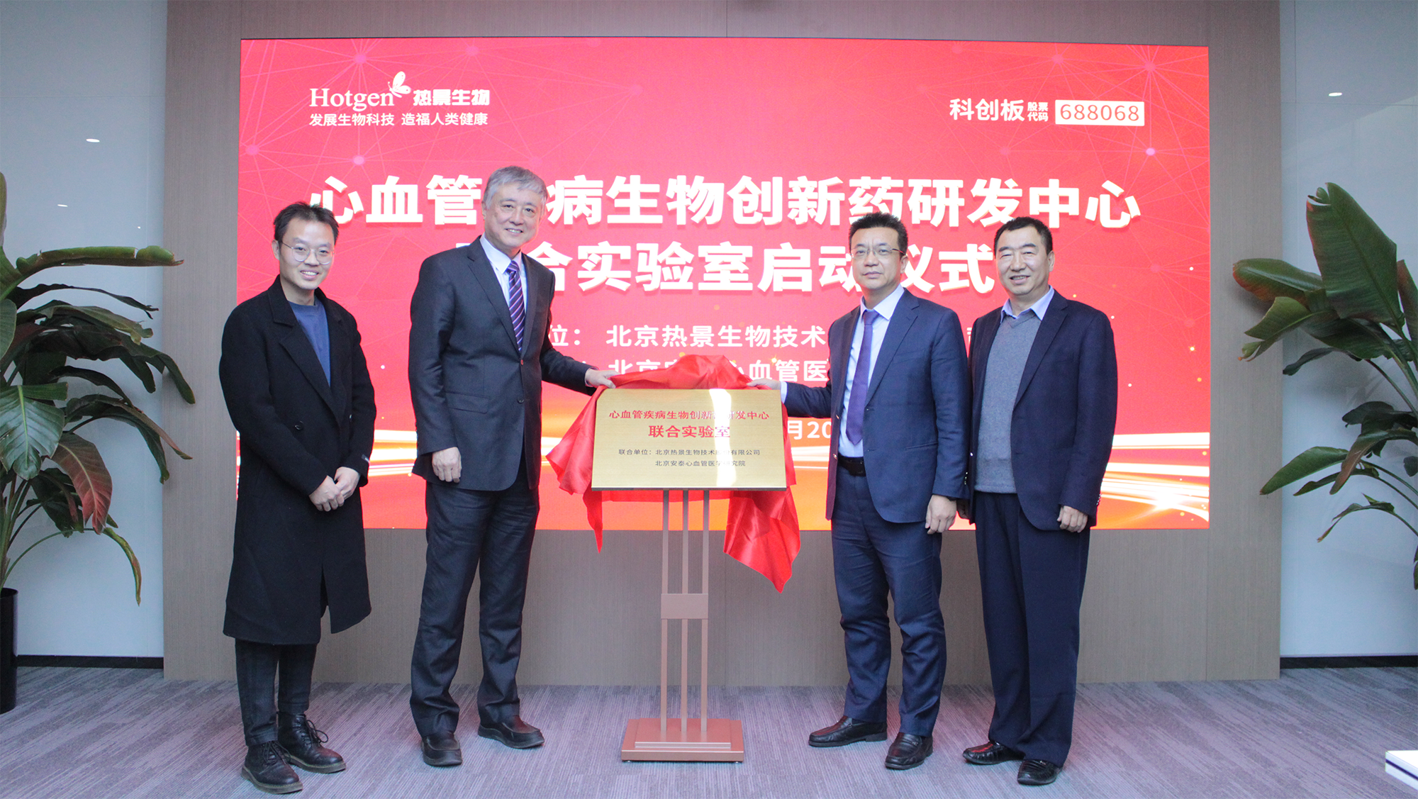 2023年11月20日,北京熱景生物技術(shù)股份有限公司董事長兼總裁林長青先生、北京安泰心血管醫(yī)學(xué)研究院院長杜杰教授、北京舜景生物醫(yī)藥技術(shù)有限公司總經(jīng)理孫志偉教授共同為“心血管疾病生物創(chuàng)新藥研發(fā)中心聯(lián)合實驗室”揭牌,這是一場具有里程碑意義的啟動儀式,標(biāo)志著熱景生物及其關(guān)聯(lián)公司在安泰心血管研究院的加持下,聚焦心血管疾病從診斷到治療的研發(fā)進入快速發(fā)展階段。