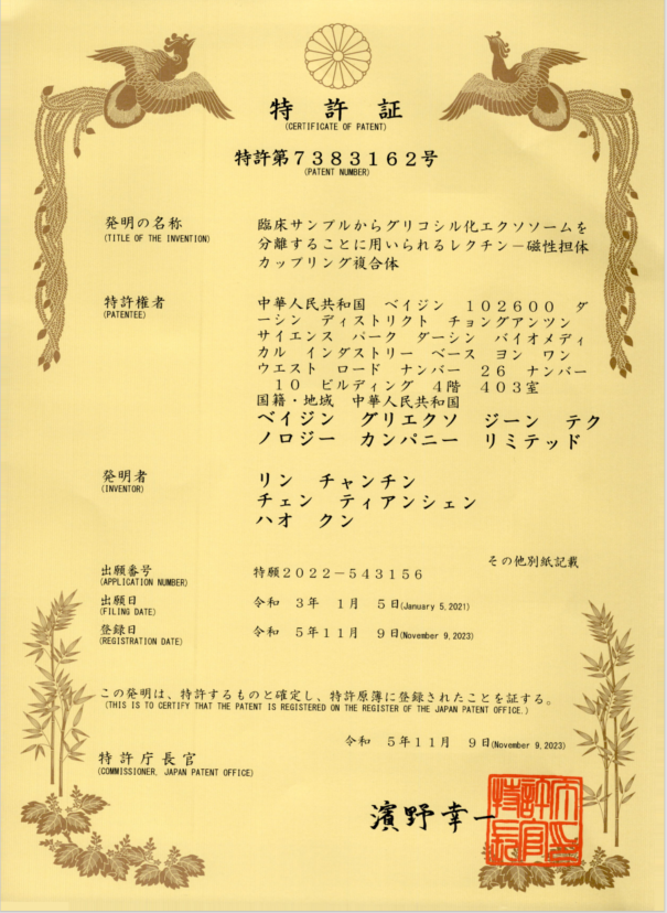 近日,熱景生物自主研發(fā)的糖鏈外泌體技術(shù)GIyExo一Capture平臺通過PCT途徑獲得日本發(fā)明專利授權(quán),標(biāo)志著糖基化外泌體進(jìn)入國際臨床診斷領(lǐng)域又邁出了具有里程碑意義的重要一步。