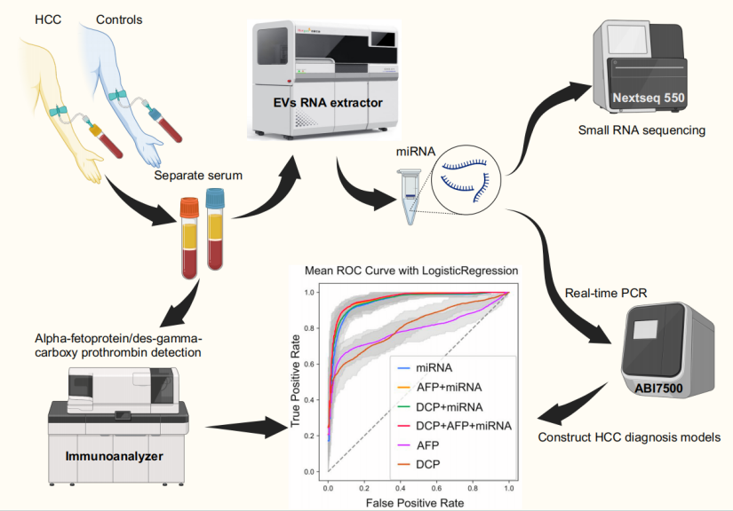 綜上所述,基于miRNA和AFP特征的HCC分類模型實(shí)現(xiàn)了精準(zhǔn)診斷,標(biāo)志著肝癌早期篩查領(lǐng)域的重大突破。肝癌外泌體miRNA產(chǎn)品以其高度準(zhǔn)確性和非侵入性,為臨床診斷帶來了新的希望,助力全球肝癌患者獲得更精準(zhǔn)的治療。這一研究成果不僅推動(dòng)了肝癌研究與臨床實(shí)踐的進(jìn)展,也為實(shí)現(xiàn)更有效的早期篩查和治療方案奠定了堅(jiān)實(shí)基礎(chǔ)。