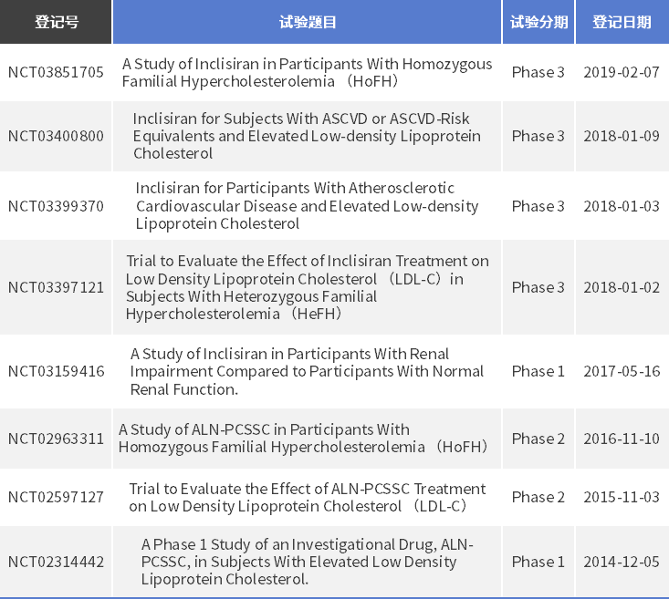 大部分小核酸藥物的臨床開發(fā),大都經(jīng)歷在10年以上,且真正意義上完成的臨床試驗數(shù)量,相對于當(dāng)先傳統(tǒng)的藥物開發(fā),數(shù)量不是很多。以leqvio已完成的臨床試驗舉例,具體如下。