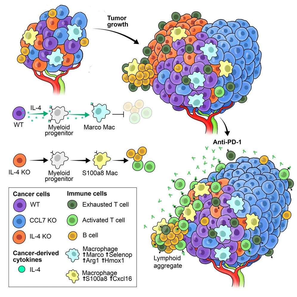 “令人驚訝的是,即使在含有產生il -4的癌細胞的腫瘤中混合,缺乏il -4的癌細胞也被免疫系統(tǒng)消除,這種現(xiàn)象稱為腫瘤內異質性,這也有助于癌癥的耐藥性,”Brown博士說,他是西奈山基因工程教授和該研究的高級作者。