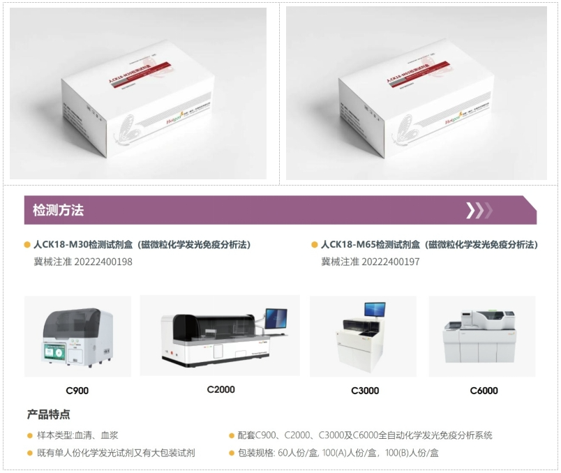 熱景生物新品-CK18(化學發(fā)光法國內第一證)采用先進的化學發(fā)光免疫分析技術,具備極高的靈敏度和特異性,能夠準確檢測血清中的CK18-M30和CK18-M65水平。