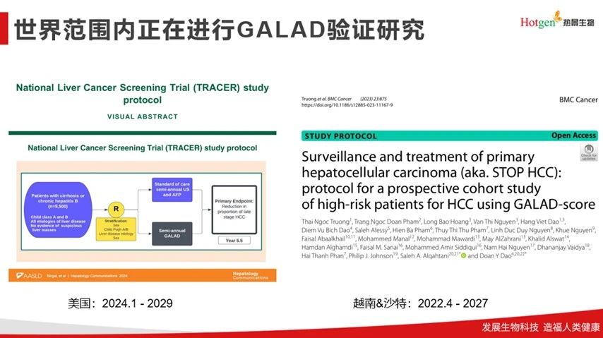 “肝癌三項”作為國際臨床認可的有效指標,已獲得國內(nèi)外眾多指南和共識推薦。日本通過“肝癌三項+超聲”篩查體系將早診率提升至62%,而中國肝癌目前早期診斷率不足30%,亟需通過普及篩查等措施縮小與國際上的差距。熱景生物基于中國病患人群背景開發(fā)的C-GALAD模型,更契合中國肝癌高風險人群的分層管理需求,其臨床推廣對提高我國肝癌早期預警能力,改善肝癌患者生存率具有重要價值。值得一提的是,美國等國家先后啟動了GALAD模型的前瞻性驗證研究。在國內(nèi),熱景生物從核心優(yōu)勢出發(fā),率先啟動了C-GALAD模型的大規(guī)模多中心研究,并積極投身于海南省衛(wèi)建委牽頭的早期肝癌篩查行動中,以實際行動為我國肝癌防治事業(yè)貢獻力量。