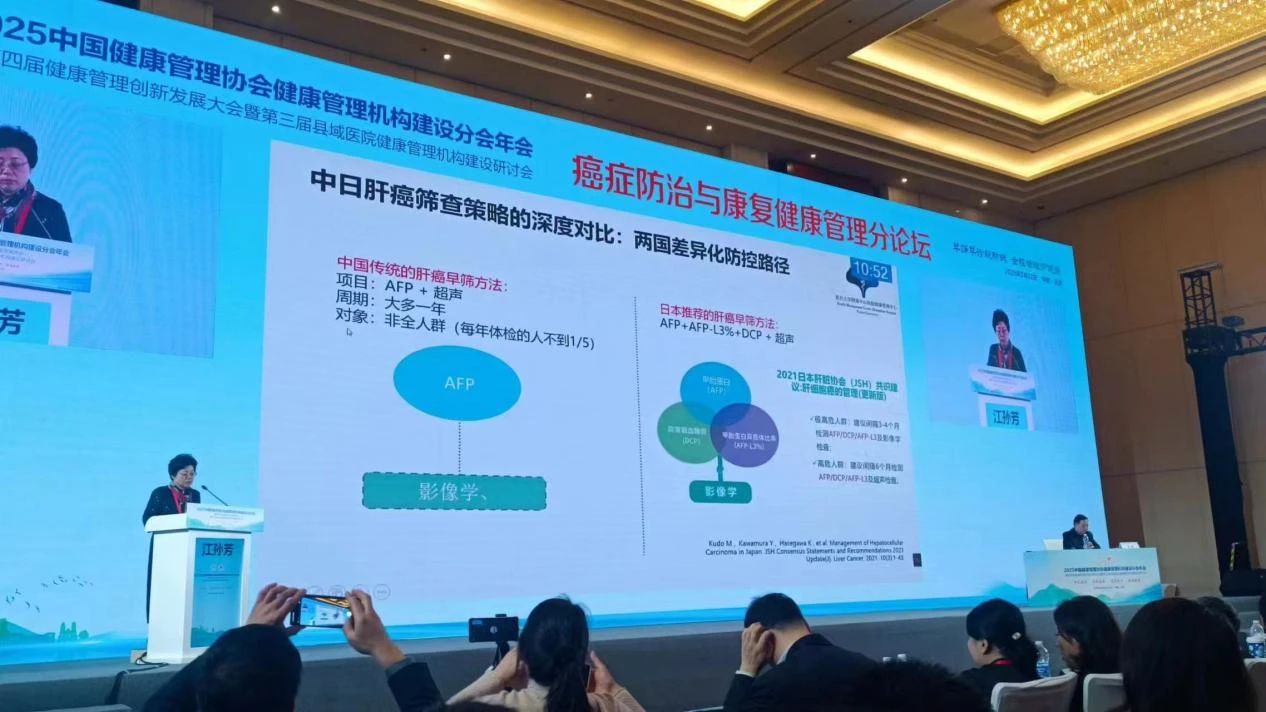 在《癌癥防治與康復(fù)健康管理》專項(xiàng)論壇中,復(fù)旦大學(xué)附屬中山醫(yī)院江孫芳主任受邀發(fā)表專題報(bào)告《健康管理中心-社區(qū)聯(lián)動(dòng) 助力肝癌早篩》,從臨床實(shí)踐與科研結(jié)合的角度,系統(tǒng)闡述了C-GALAD模型在肝癌早期篩查中的創(chuàng)新應(yīng)用價(jià)值。