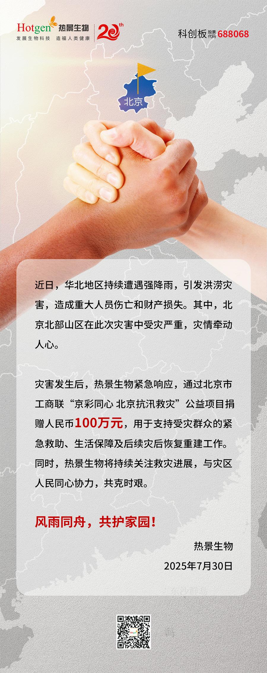 風(fēng)雨同舟|熱景生物捐贈(zèng)100萬(wàn)元,馳援強(qiáng)降雨救災(zāi)工作